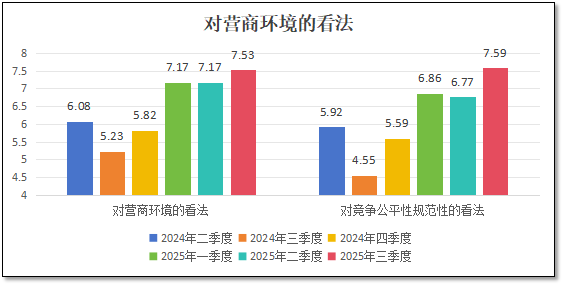 由上面三个图可见,2025年以来,受国内国际多个经济向好的积极因素影响,检验检测从业者们对行业发展的整体信心较2024年大幅提升。而三季度的信心数据与一、二季度相比又有比较明显的增长,说明下半年以来检验检测行业经营情况和回款状况明显改善,行业发展状态进一步转好,从业者们的信心进一步增强。